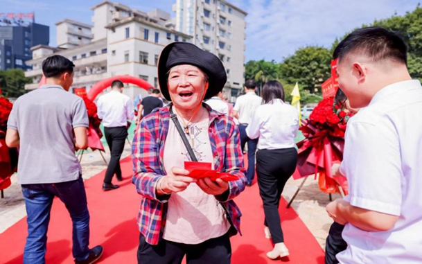 “文冲东”旧改项目江北片区安置区开工奠基仪式现场,群众心情喜悦自行派发红包。