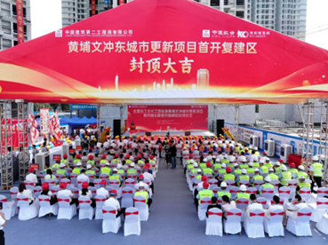 “文冲东”旧改项目首开复建区封顶仪式现场。
